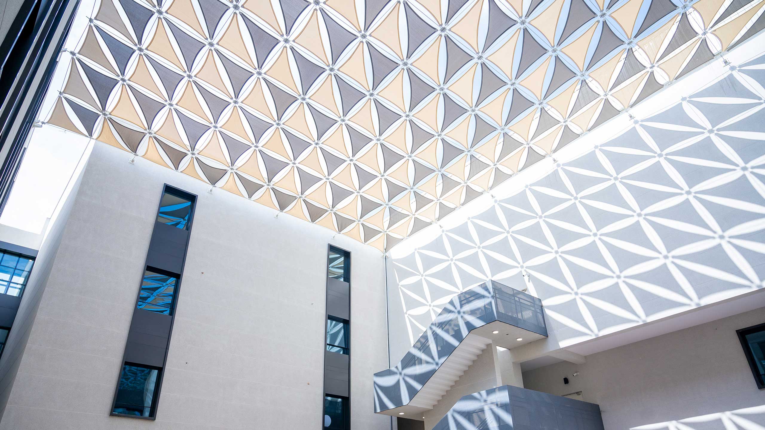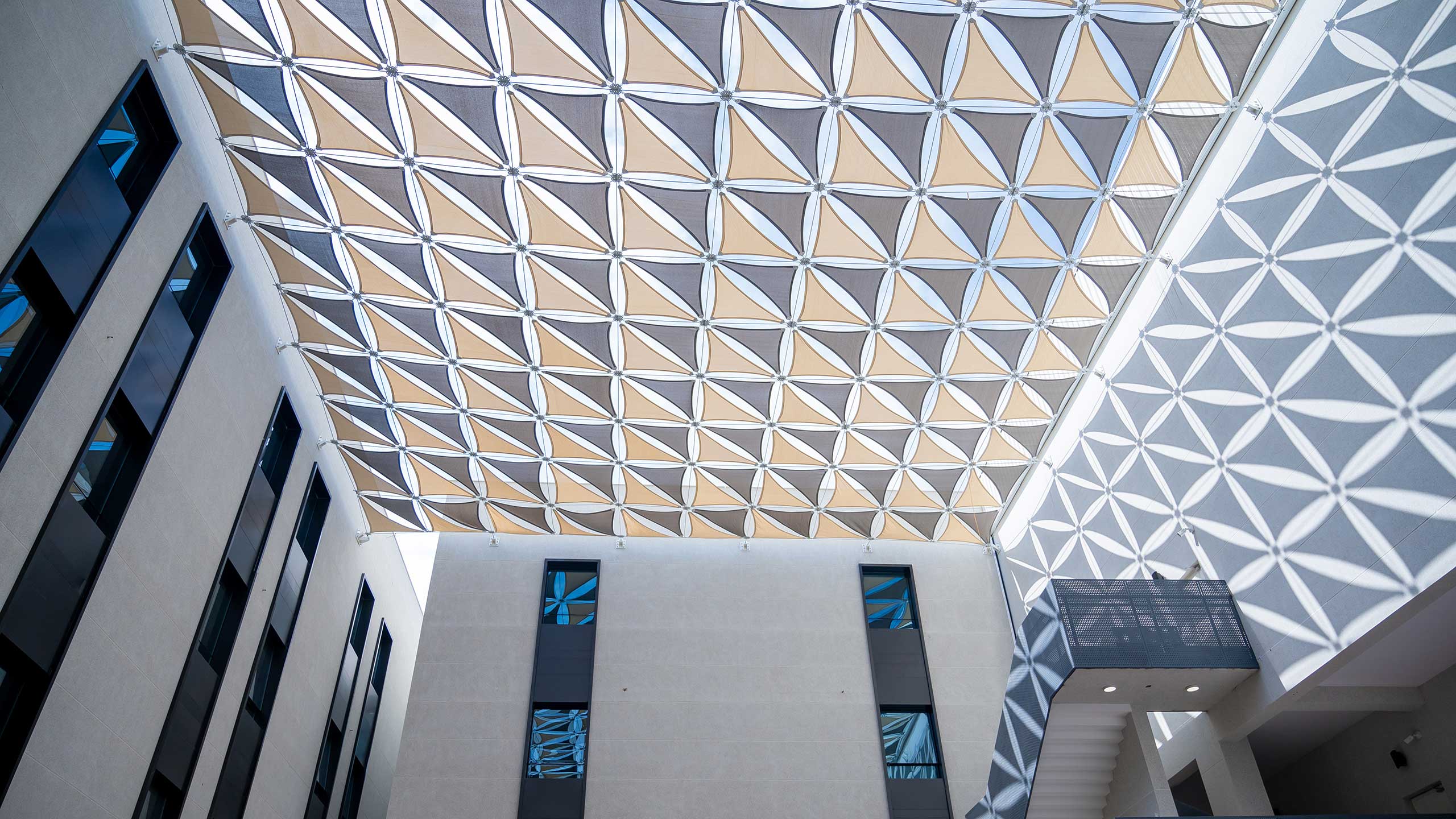 Dedicated prayer spaces on each floor support spiritual practice and reflection.